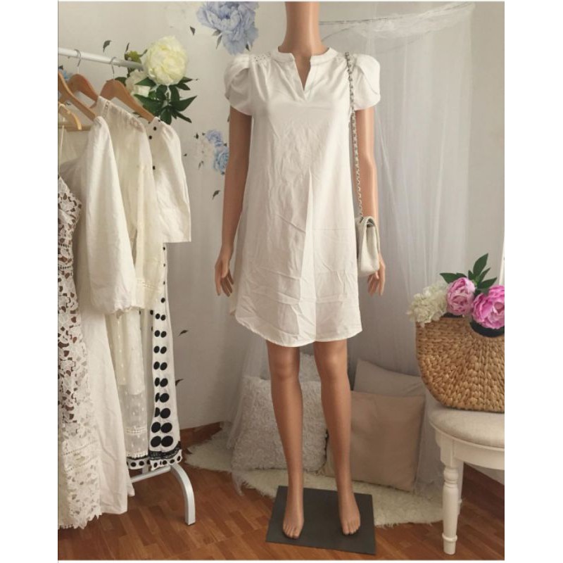 Shein Puff Sleeves Shift Dress In White Shopee Philippines